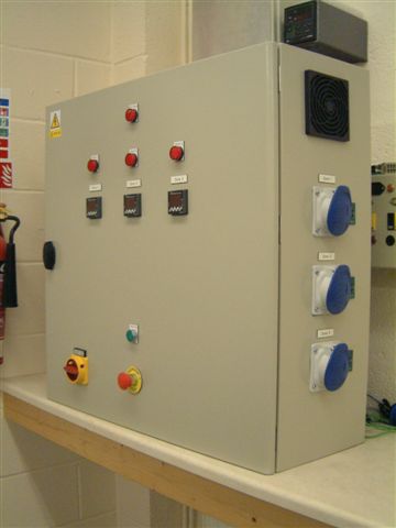 The example below is a 3 zone temperature control panel used to control 3 banks of short wave infrared heaters on a curing process. Apart from accurate temperature control the end customer also wanted indication of a heater failure and to inhibit operation of the heaters if an access door was open or a motor was not running.